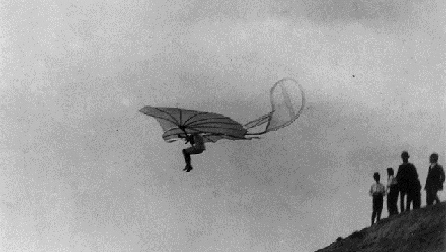 Otto Lilienthal hat als Erster erkennt, dass Flügel gewölbt sein müssen, um Auftrieb zu bekommen. Sein erster Gleitflug gilt vielen Experten als der Augenblick, in dem die Menschen das Fliegen „erlernen“.